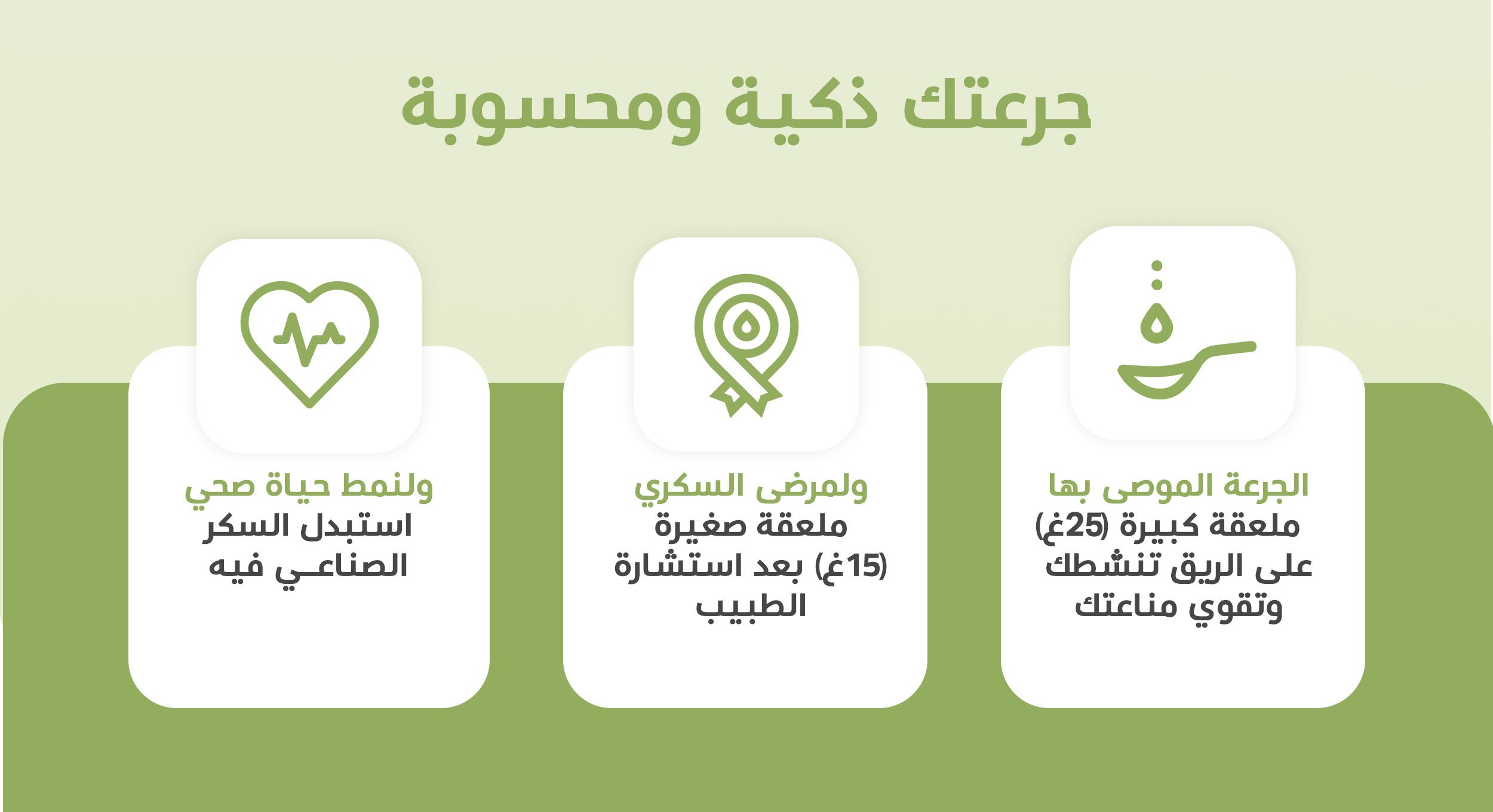 لمرضى السكري: ملعقة صغيرة (15 جم) بعد استشارة الطبيب.
