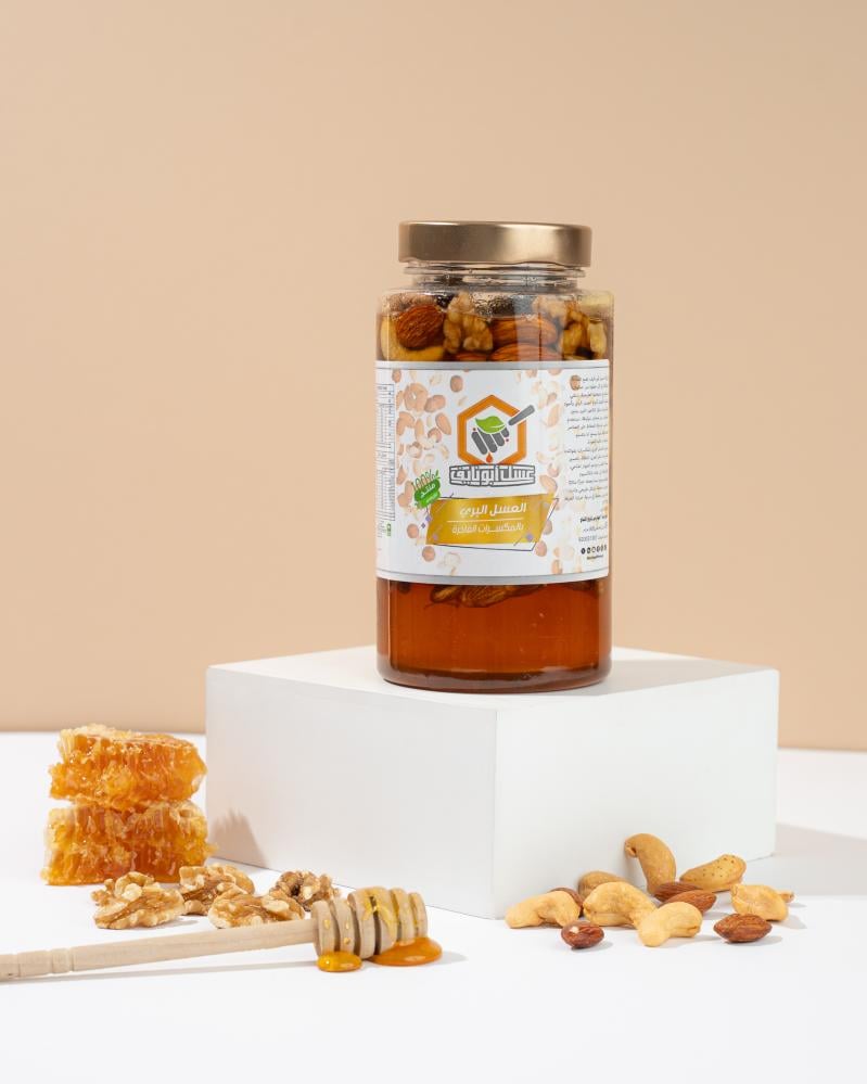 استمتع بتجربة نكهة فريدة تجمع بين الطعم الحلو والقيمة الغذائية العالية، العسل البري بالمكسرات هو مزيج فاخر من العسل الطبيعي الخام مع مكسرات مختارة بعناية (لوز، كاجو، عين الجمل)، يقدم توليفة غذائية متكاملة تدعم المناعة، وتقوي الطاقة، وتناسب كل من يبحث عن منتج طبيعي فاخر عالي القيمة. الفيتامينات، مضادات الأكسدة، والمعادن الأساسية التي يحتاجها الجسم يومياً.